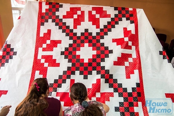 В Днепре решили отметить День вышиванки рекордом Украины. Местные мастера создали к празднику огромною вышиванку, которую представили на смотровой площадке в парке им. Т. Шевченко.