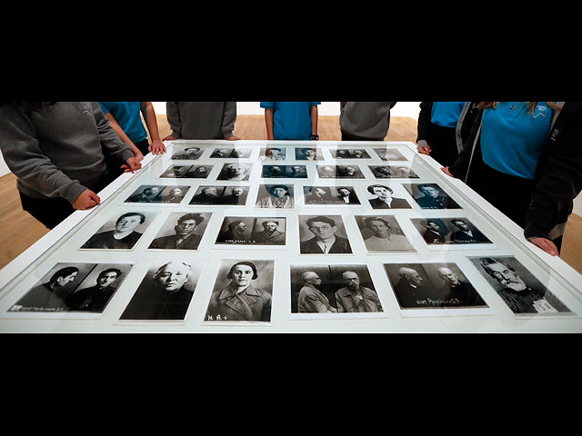 Группа школьников у экспозиции с фотографиями узников ГУЛАГа и жертв Большого террора.