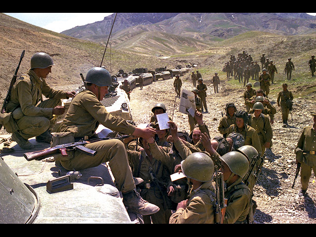 Советские солдаты получают почту в Афганистане.